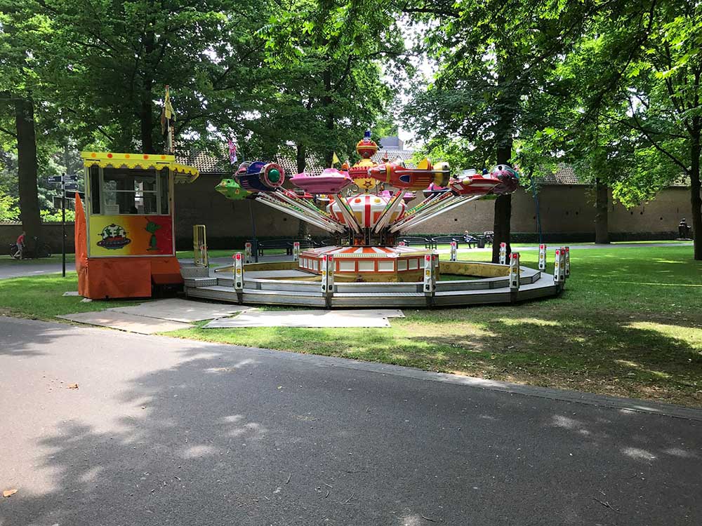 De UFO Jet is een kleurrijke vliegtuigmolen waarin kinderen plaatsnemen in kleine raketjes die tijdens het draaien zachtjes omhoog komen.